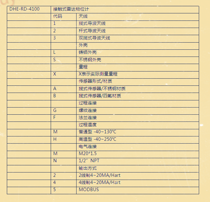 以上就是DHE-RD接触式雷达液位计产品的全部内容,同类产品还有:杆式雷达液位计、TYCO双法兰液位计、DHE-RD防爆雷达液位计、导波式雷达液位计、锥面雷达物/液位计、26G水利雷达液位计、PGCAR811G高温喇叭口雷达液位计、其他型号液位计等,液位计厂家欢迎您来电洽谈合作。